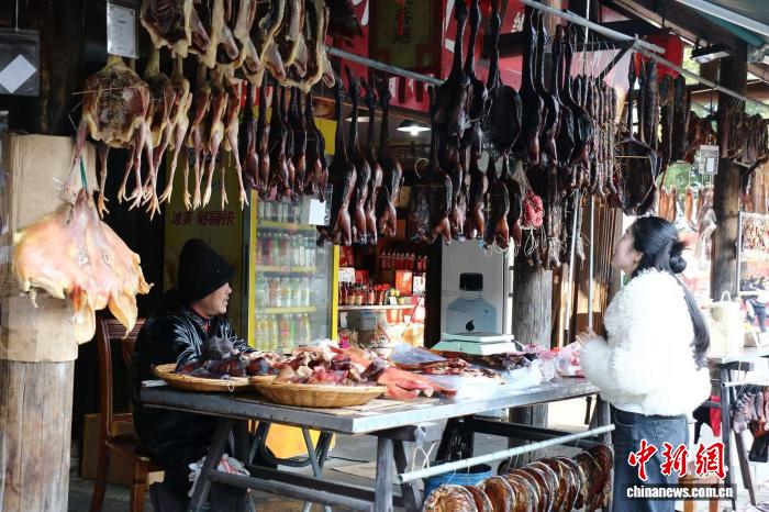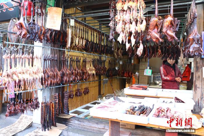 12月27日,住户家中挂谦卖售的酱货。中新社记者 项菁 摄